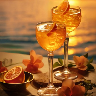 Inspirado en los colores de un atardecer, este cóctel es perfecto para darle un toque visual y exótico a tu fiesta. Ideal para eventos al aire libre o celebraciones tropicales.